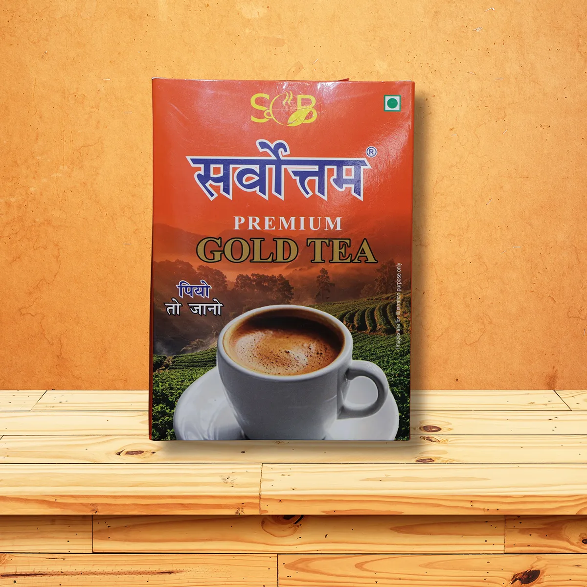 Sarvottam Premium Gold Tea – A rich, strong, and aromatic blend made from 100% pure Assam leaves. Perfectly crafted for those who love authentic Indian chai with a golden touch.