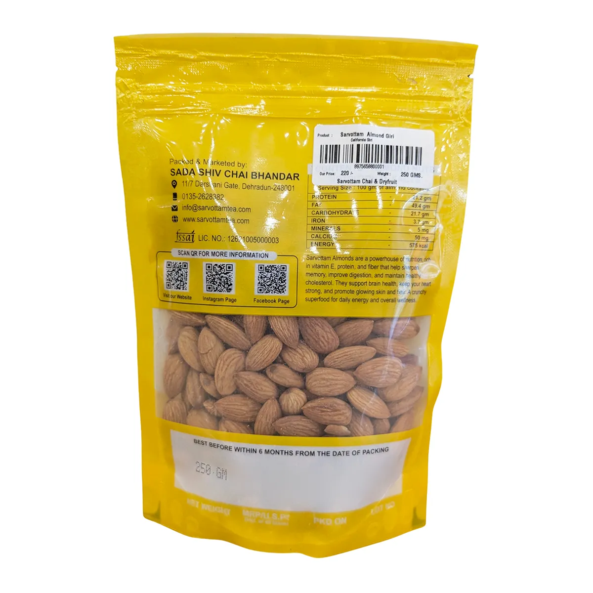 Sarvottam California Almonds | Premium Quality | High in Protein & Vitamin E | Pure Natural Dry Fruits for Healthy Snacking