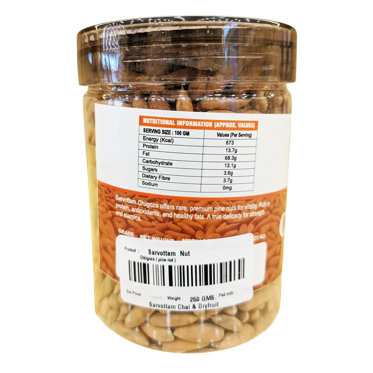 Sarvottam Chilgoza – Premium pine nuts rich in protein, healthy fats & antioxidants for energy, heart health & overall wellness.