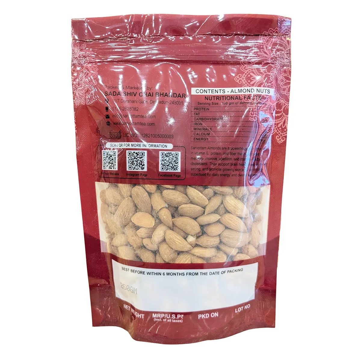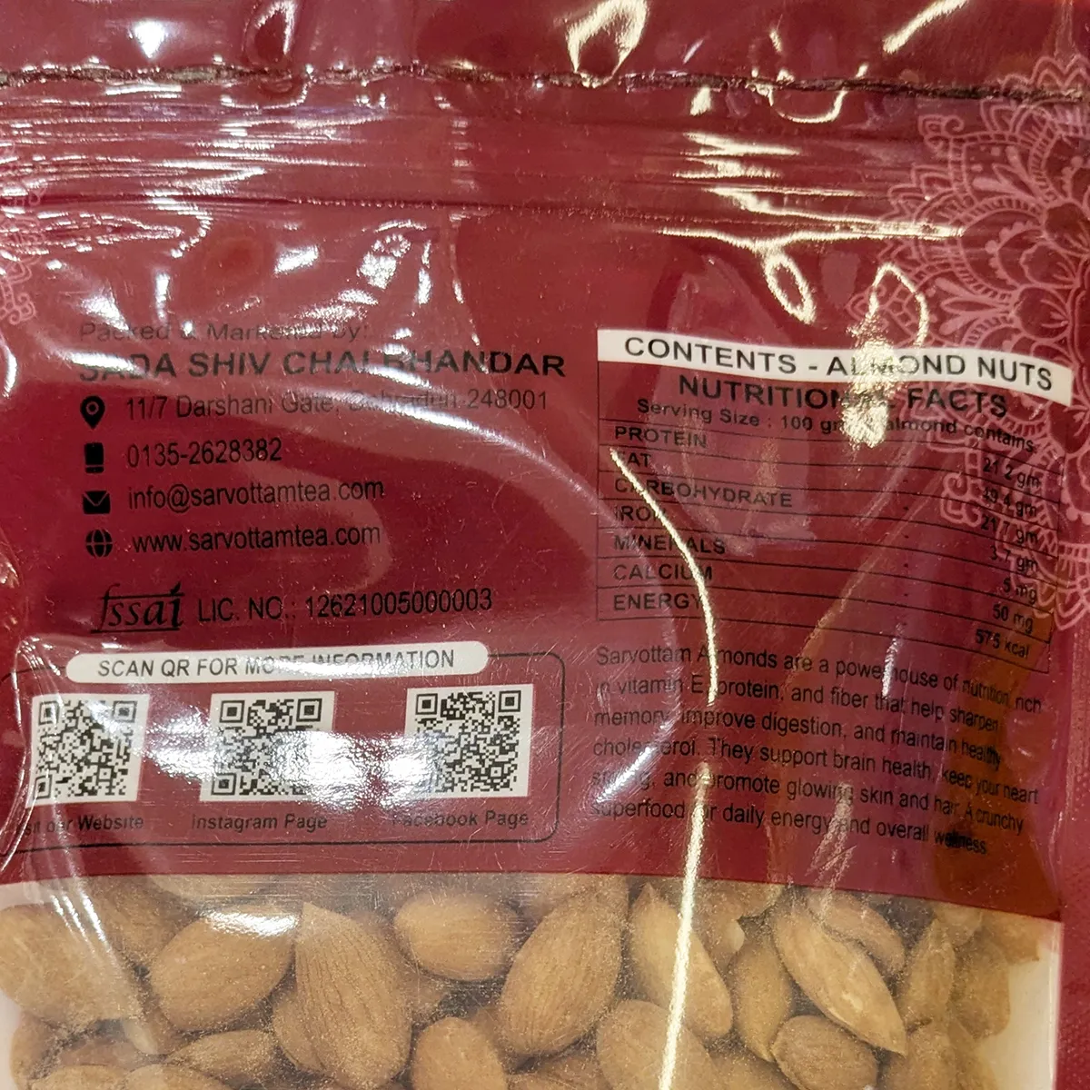 Sarvottam Gurbandi Whole Almonds 250g | Premium Quality | Rich Nutrients | Natural Healthy Dry Fruits