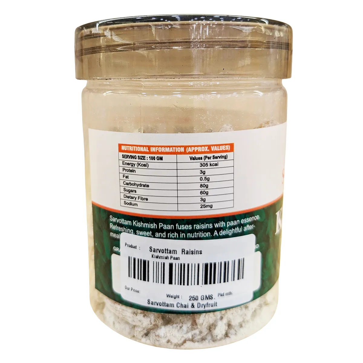 Sarvottam Premium Kismish Paan 250g Box | Delicious Fusion of Raisins & Paan Flavor | Natural Sweet Snack | Perfect Mouth Freshener & Digestive Treat