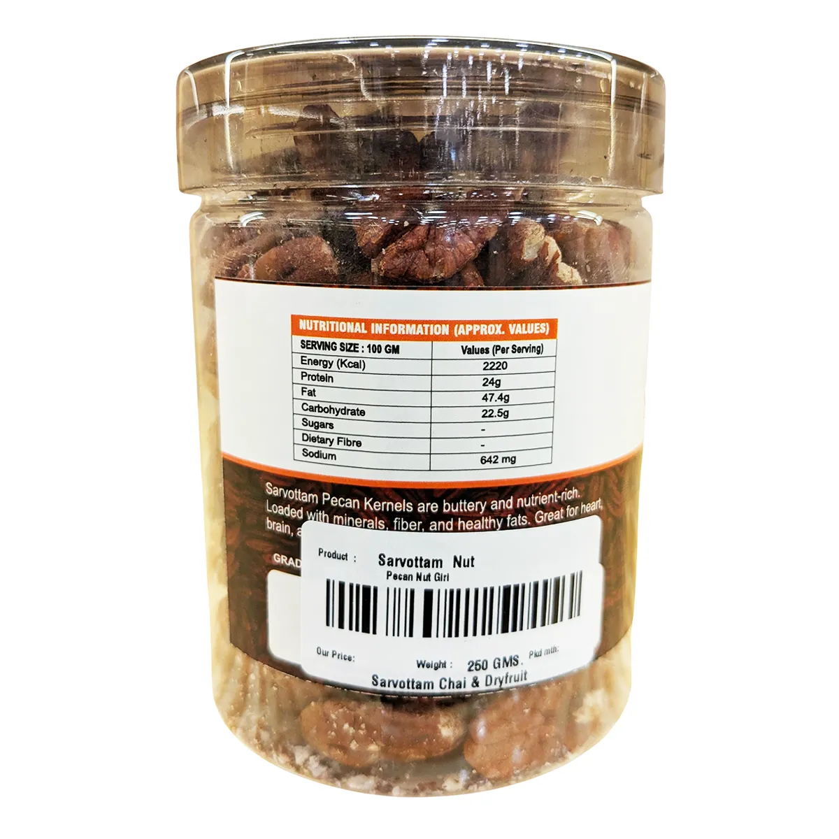 Sarvottam Pecan Nut Kernels – Premium, crunchy & buttery nuts rich in protein, fiber & antioxidants for heart & brain health.