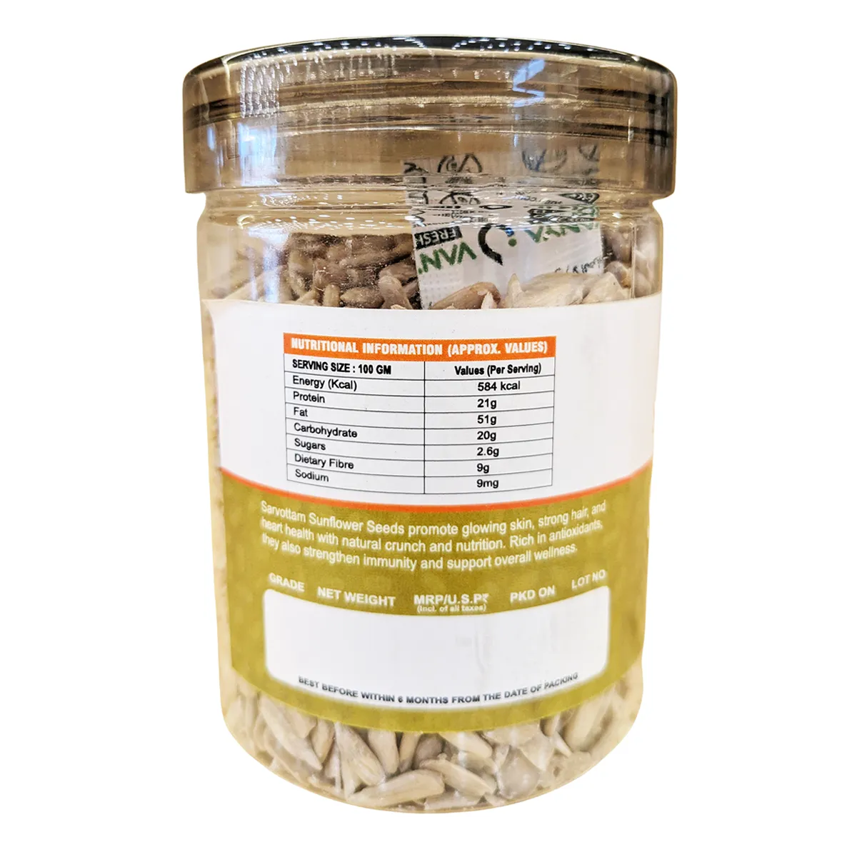 Sarvottam Sunflower Seeds – Crunchy, nutrient-rich seeds packed with protein, fiber & antioxidants for a healthy, energy-boosting snack.